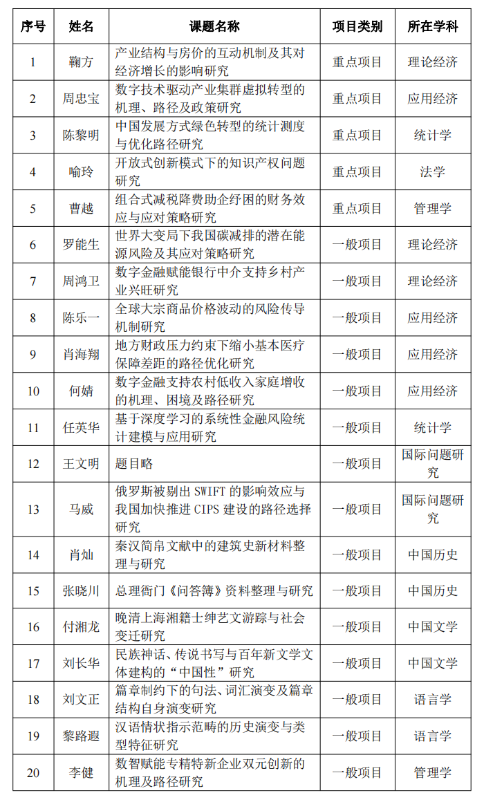 我校2023年国家社科基金年度项目和青年项目公布立项名单。